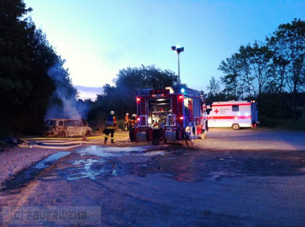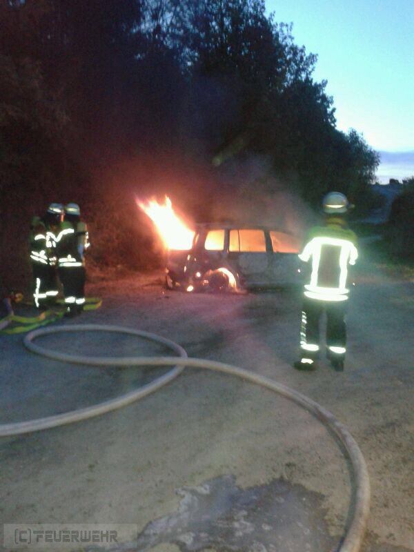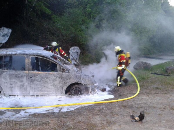 Beim Eintreffen der Feuerwehr stand ein PKW auf dem Wanderparkplatz in Vollbrand.