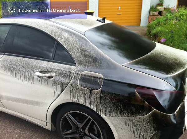 Durch das Kippen wurde Öl durch die Abgasanlage auf die Straße und mehrere Fahrzeuge ausgeworfen.