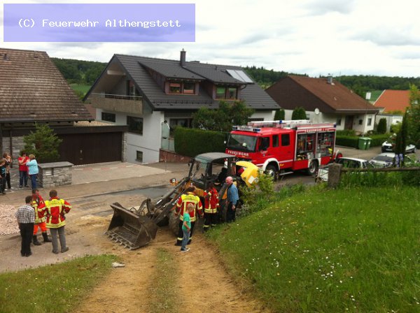 Ein umgekippter Radlader in der Bergstraße wurde gemeldet.