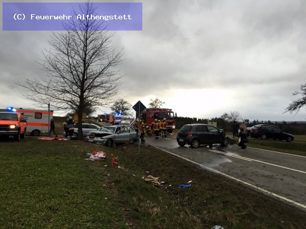 Nach der Kollision zweier Fahrzeuge waren mehrere, teils schwer verletzte Personen an der Unfallstelle vorzufinden.